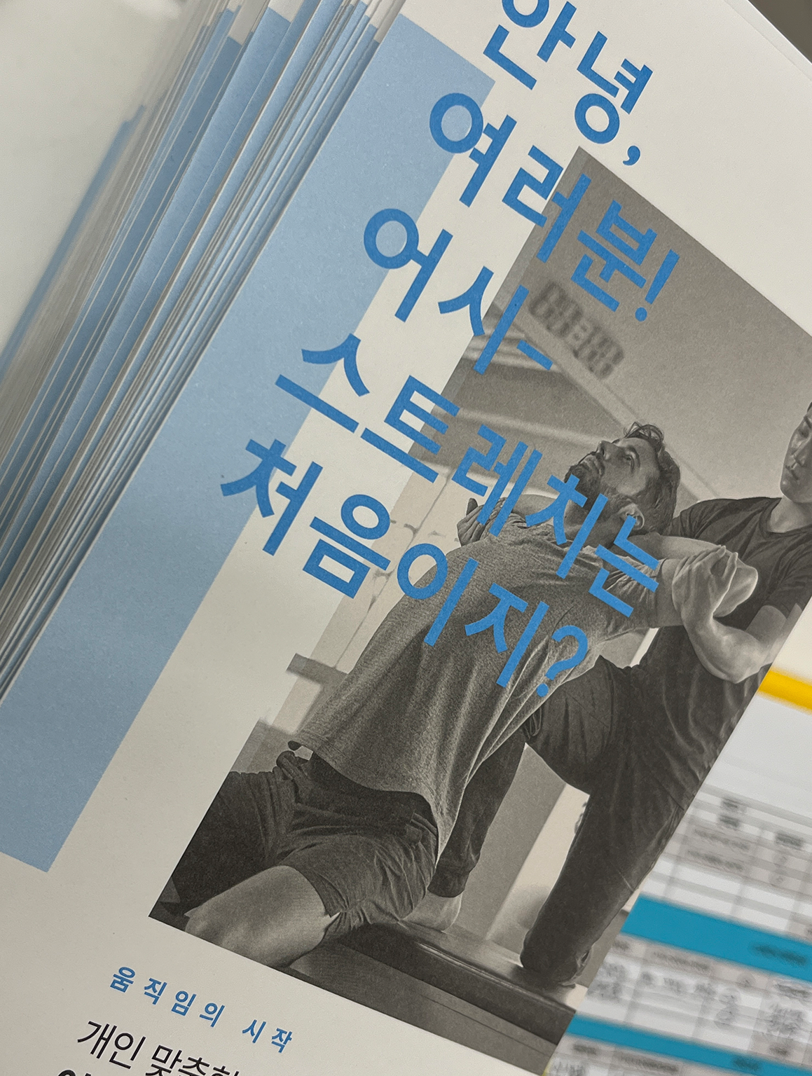 새로 생긴 곳이라서일까. 기존에 받았던 도수치료(사실 도수치료와 비교해도 되는지 모르겠다만) 실들과 비교하자면, 개방된 공간에 인테리어가 밝고 깨끗했다. 다리를 찢고, 팔을 돌리고(?) 하는 모습을 공개적으로 보이기에 흉할 수 있으나, 헬스고, 필라테스고 어차피 하다 보면 그런 생각은 1도 남김없이 사라지고 만다. 내가 이걸 왜 하고 있을까 그런 생각만 남..